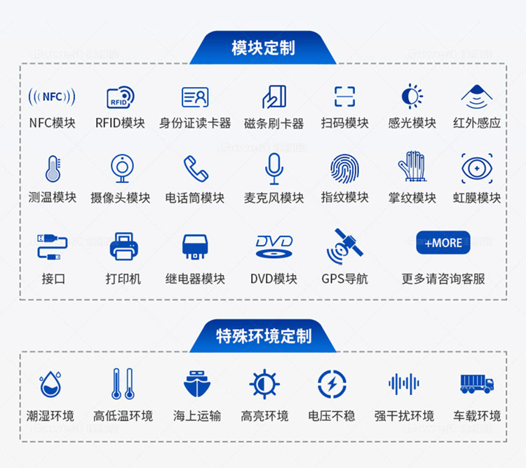 主板可更換JWS3399-F+4G+32G;更換讀卡器:身份證閱讀器、FRID讀卡器或其他指定讀卡器;內(nèi)置一維碼、二維碼識(shí)別的條碼閱讀器(需將傳感器去掉),支持中國(guó)移動(dòng)、聯(lián)通、電信全網(wǎng)通的4G模塊。